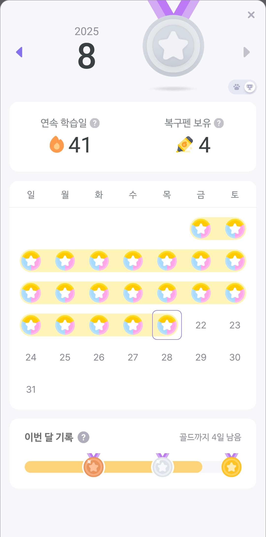 | 외국어 공부 39일차(25.08.19) 말해보카,듀오링고 (1) | 2025.08.19 |